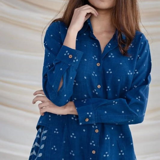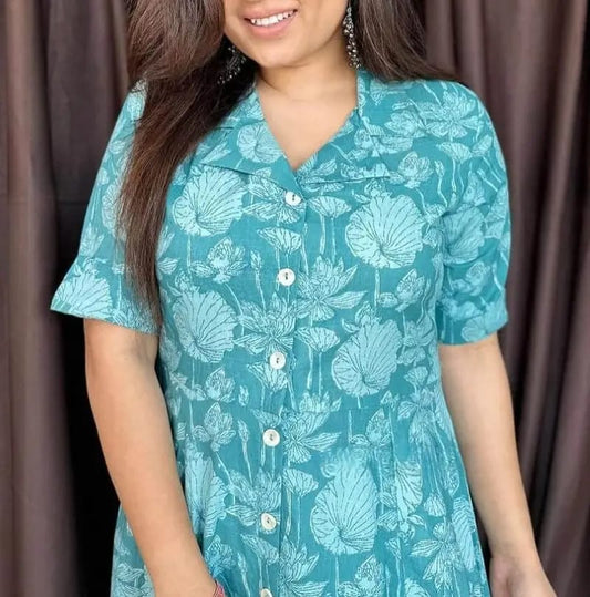 Pure Cotton New Printed Kurta Pant Set Blue Dot