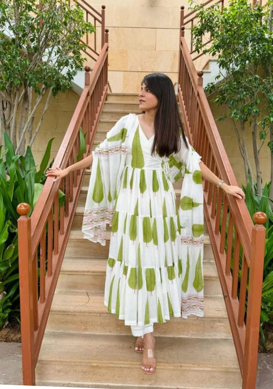Pure Cotton New Stylish Anarkali Kurta Pant With Dup...