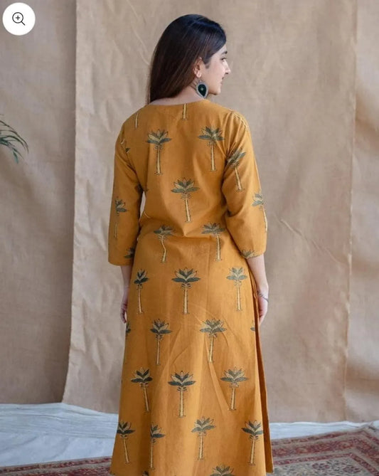 Mustard Pure Cotton New Printed Kurta Pant Set Yellow